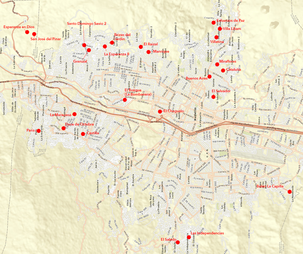 A football game in the Independencias II neighbourhood of the 13th Commune of Medellín. This was the first tournament since a stray bullet killed one of the players on the pitch several months earlier. The Colombian international Juan Fernando Quintero, of a displaced family and whose father was “disappeared” by the Colombian military, is from the 13th Commune.