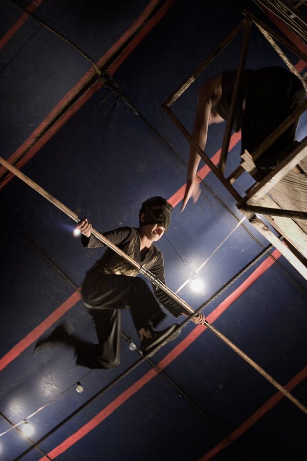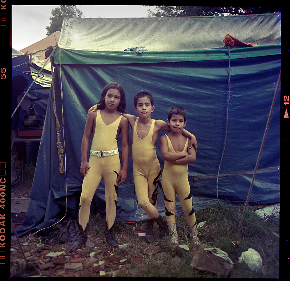 I observed that the tendency amongst the nomads, who lived in the camarines – the smaller residential tents – and moved with the circus, was to not rehearse so frequently. Jhon Estevan and Daniel were an exception to this tendency. (Yerferson was too small to say, as it was all one big game for him). Part of their dedication was driven by sibling rivalry. Daniel, who was younger than Jhon Estevan by more than a couple of years, was particularly driven by the desire to catch up and surpass his brother. Even in the portraits I made of them with my old analogue Mamiya C-33, Daniel would try to pose larger or raise himself as high or taller than his brother. He had all the makings of achieving great heights in the circus.