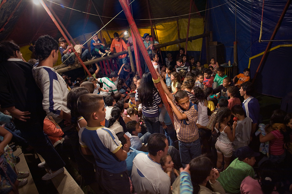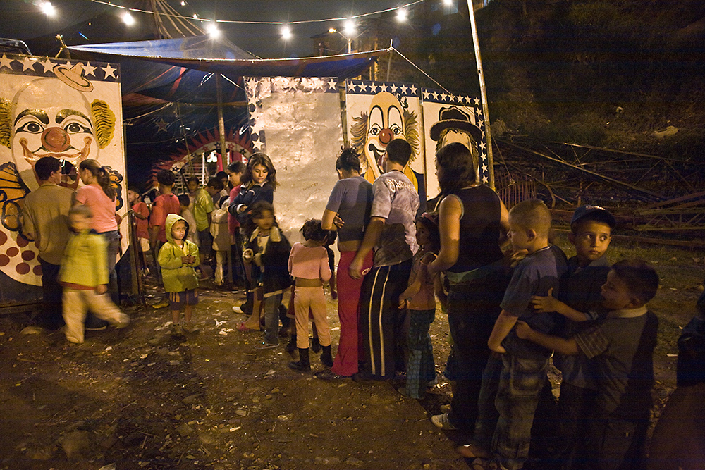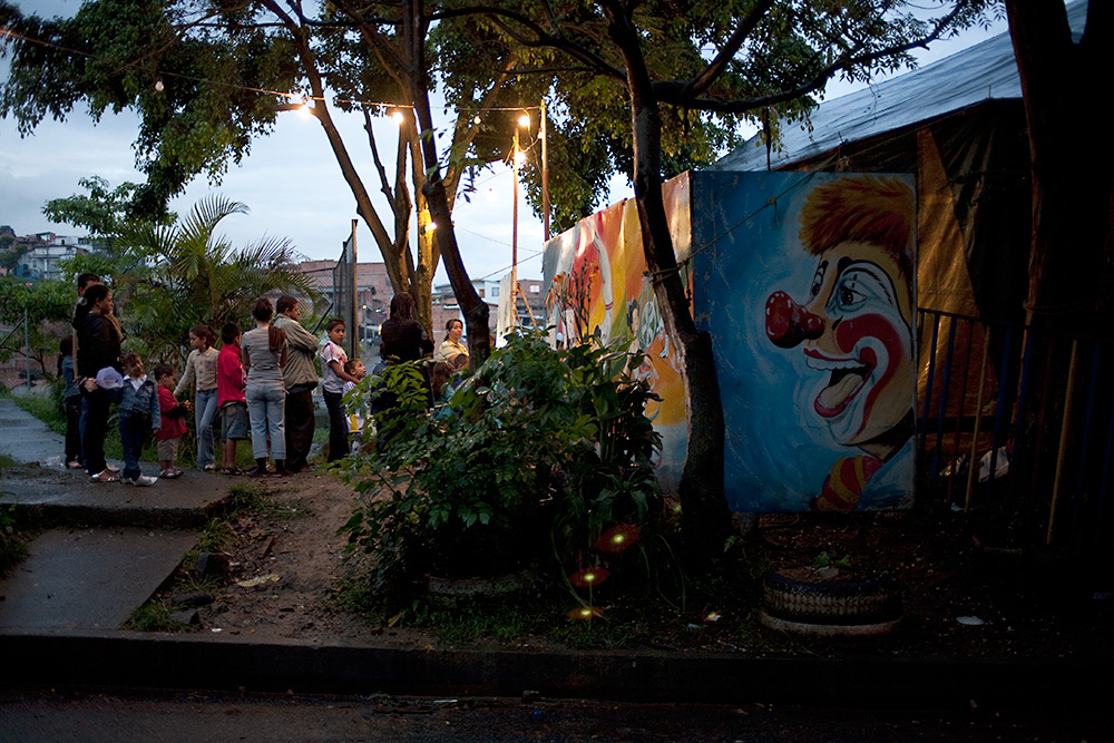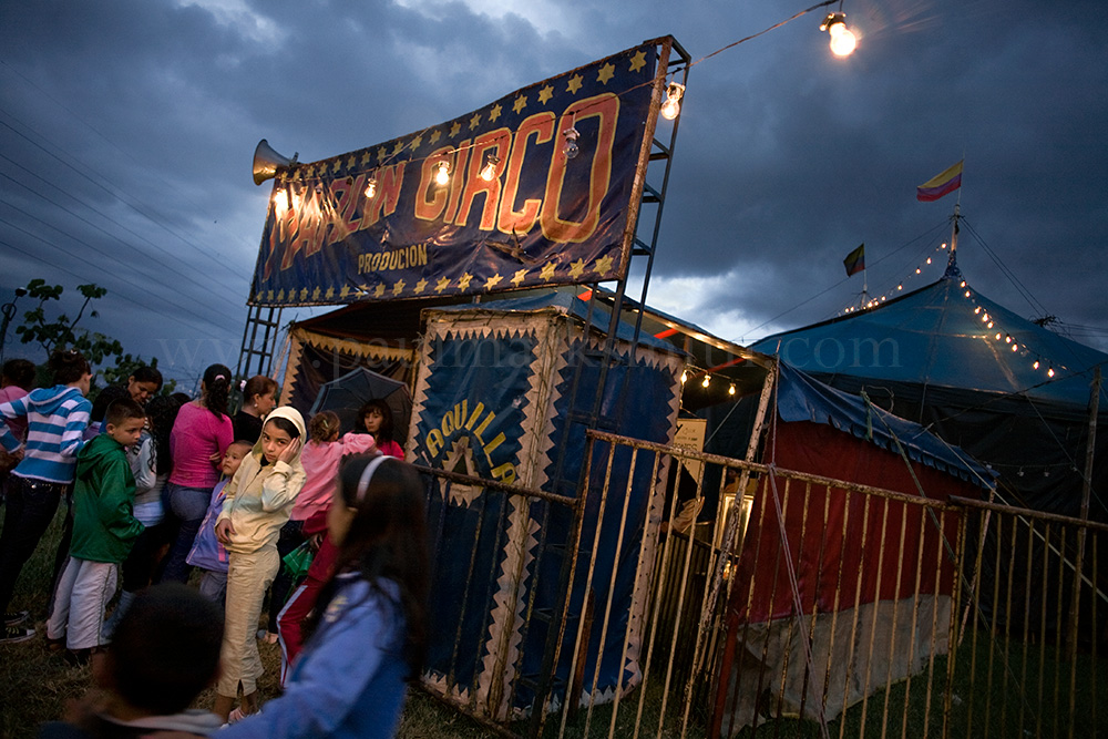 In 2008, I joined the nomadic circuses for a few months as they traversed and performed in the neighbourhoods in the northern half of the Aburrá Valley. The following photographs and text recount some of my travels, travails and moments within the world of the little big tops. This work is a celebration of and lament to a world that is in a slow slide to eventual extinction. It was facilitated by a scholarship awarded to me by the Municipality of Medellín, which arrived in the moment I was about to give up on the project and allowed me to continue my study of the economía popular of the circos populares in the barrios populares.