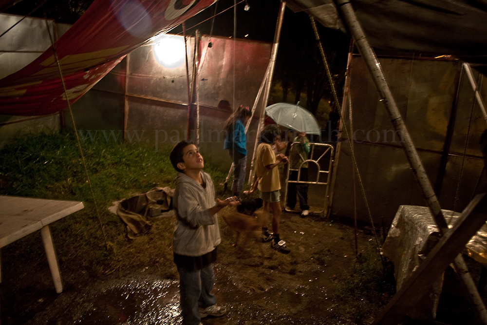 “Thank you for generating employment with your visit. Yours faithfully: Mario Salazar,” reads a notice, handwritten in blue marker pen by the exit of the Jhon Dayer circus. Not many people have read that notice lately. After several weeks of regular nightly rain, public apathy and just plain bad luck Mario and his circus are down to their last pesos. “What should we do then?” he says, somewhat angrily. “Should we go out onto the street and start robbing people?”