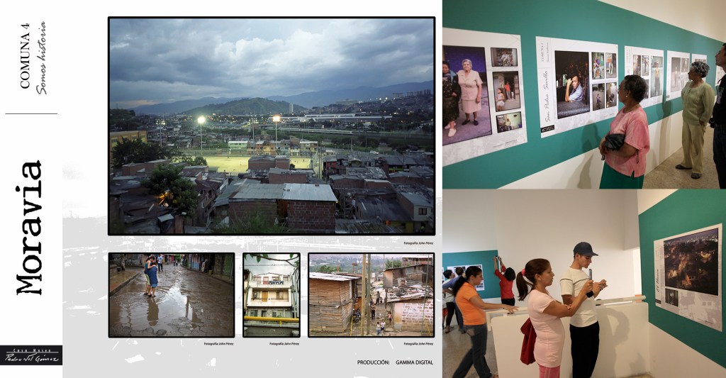 In February of 2009 I began a project in one of the oldest Communes of Medellín, the Comuna 4, with the intention of working with communities, teaching photography clases whilst documenting the people and daily life in the area. The invitation to design a project had come some months earlier from Carlos Velasquez, communications director of the Pedro Nel Gómez Museum. I wished to use the opportunity to integrate taking pictures with collecting pictures and stories to build an ongoing historical archive of the Commune. Many of these I knew would be anecdotes of forced migrations to the city, either through forced displacement or economic necessity, and of stories of hardship and community during the construction of neighbourhoods that had lived through violent times.