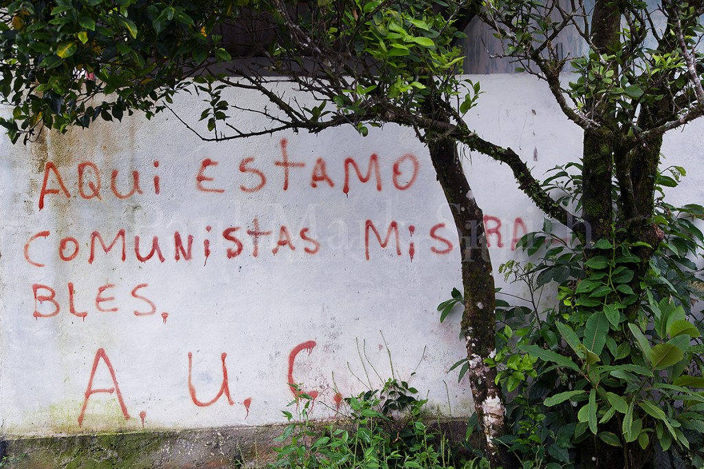 “Here we are miserable communists” – graffiti left in El Placer by paramilitary occupiers.