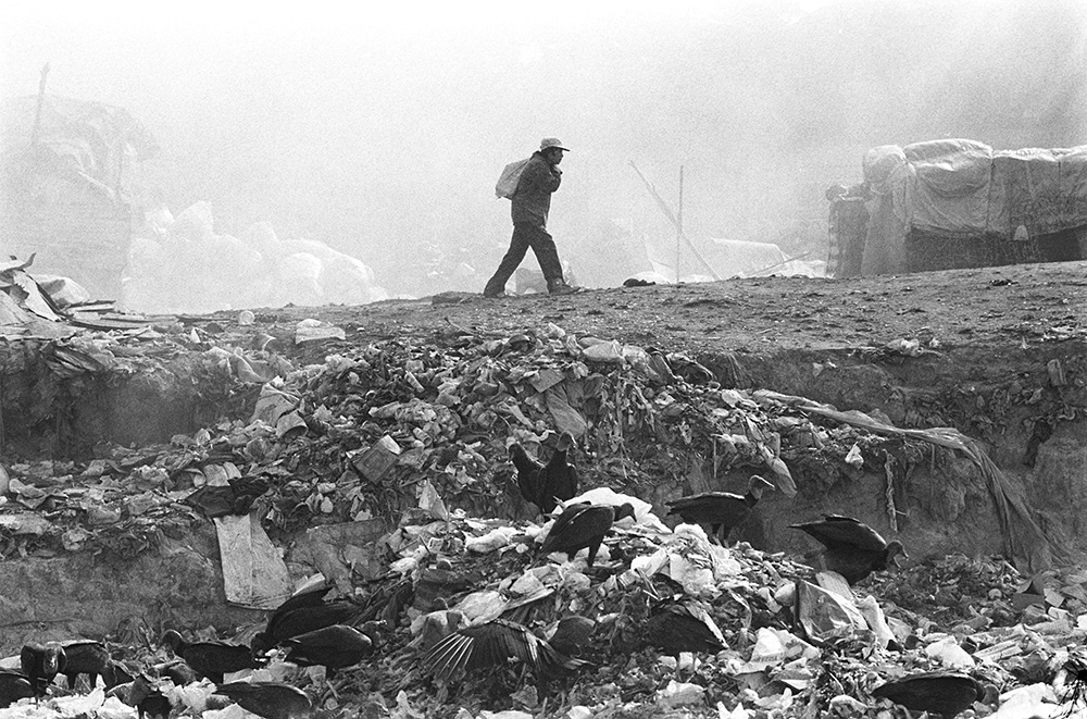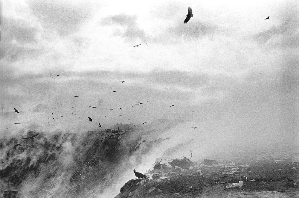 A dense white smoke rises from the depths of the earth, creeping across the detritus filled flat plain and cascading into a steep sided ravine, which fills and spills over the rim and into the streets. On its slow march through the dusty earthen streets, it washes over vehicles and people, over houses and into and through open doors. It flows like a the last foam of a breaking wave creeping up the beach and splices over the walls and through the cemetery’s iron gates, found and over the monuments and gravestones. It carries an almost sweet miasma of burning plastic and dozens of other indistinguishable combustibles – unbearable within the body of its thick white mass and unpleasant and impossible to ignore far beyond, sometimes reaching the central square – the Plaza de la Republica – and the national palace less than three kilometres away as the vultures glide, to where Presidents and military dictators have sat, governed and ordered the slaughter and scorched earth of poor indigenous peoples and farmers on the Altiplano and in the mountains, in the jungles and on the flat plains of the Pacific Coast cane and the Caribbean Coast banana plantations.