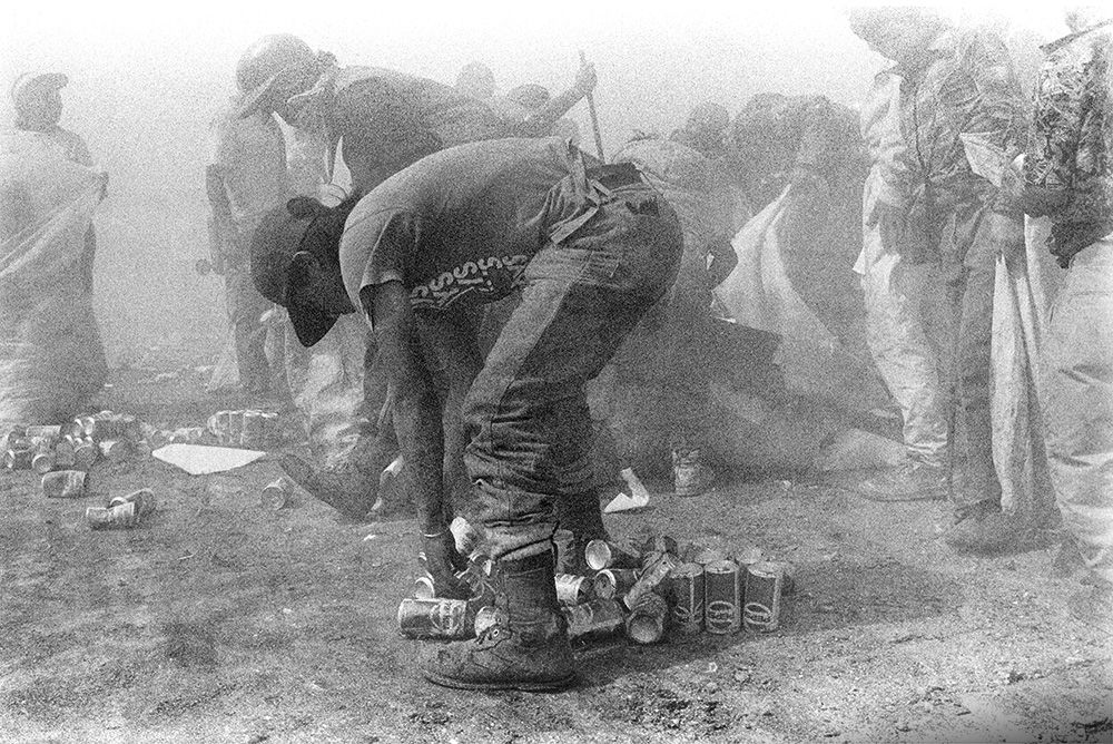 Yet, deep in this desolate abyss, where one expects to encounter some Faustian underworld, nature stubbornly persists. Birds hop, twitter, and flutter between green bushes that defy their toxic surrounds and crystalline waters spring from the earth, pure and transparent, these flow for a few metres before they succumb to the rancid bleed that seeps from the heavy and poisonous mountain of trash that is the most eloquent of monuments to greed, waste, excess and deprivation of humankind.